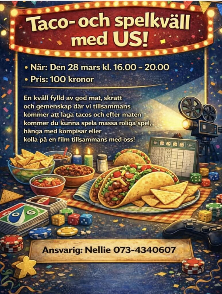 💙 I helgen har US aktivitet med taco-kväll och spel/film, anmälan på lappen i stallet